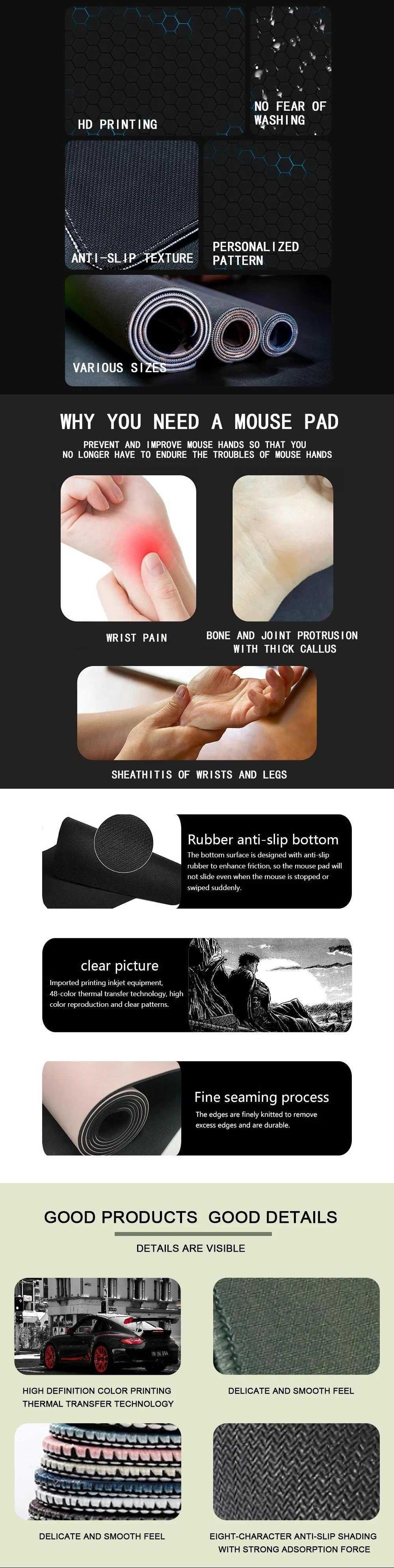 *Printing process: Our mouse pad is printed and produced with the help of hot pressing and dye sublimation, which is the process of converting solids into gases. The high temperature of the printing press turns the ink into gas and bonds with the smooth polyester material that forms the top of the mouse pad, so you don't have to worry about the design peeling off or fading.